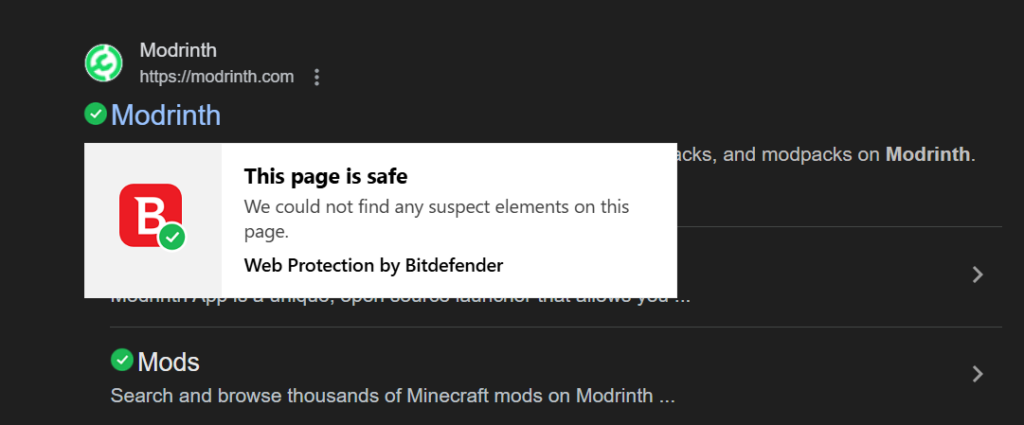 Once you are on the site of CurseForge download it, if you think this is a virus of such do not worry it is deemed safe and the same is for Modrinth. This is proven through my anti-virus.