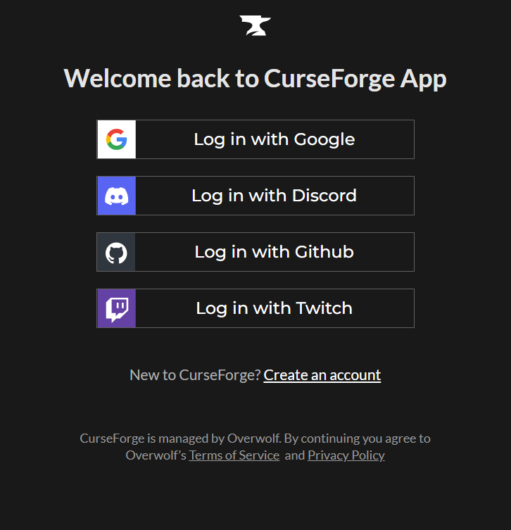 When you have downloaded CurseForge and opened it, log in. There are a few different ways through how you can log in such as Twitch, Discord, Google etc. You can even log in through CurseForge itself all you need is a email. You are able to log in as a guest and there aren’t any limitations as a guest so you can play inecraft fully while guest!